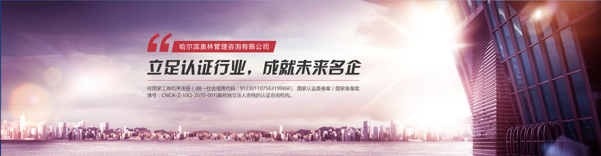 哈爾濱奧林管理咨詢有限公司(原新時(shí)代質(zhì)量認(rèn)證咨詢有限公司)成立于2000年9月,簡(jiǎn)稱HOL,HOL是經(jīng)國(guó)家工商機(jī)關(guān)注冊(cè)(統(tǒng)一社會(huì)信用代碼:91230110756319986F)、國(guó)家認(rèn)監(jiān)委備案(國(guó)家備案批準(zhǔn)號(hào):CNCA-Z-10Q-2010-001)具有獨(dú)立法人資格...